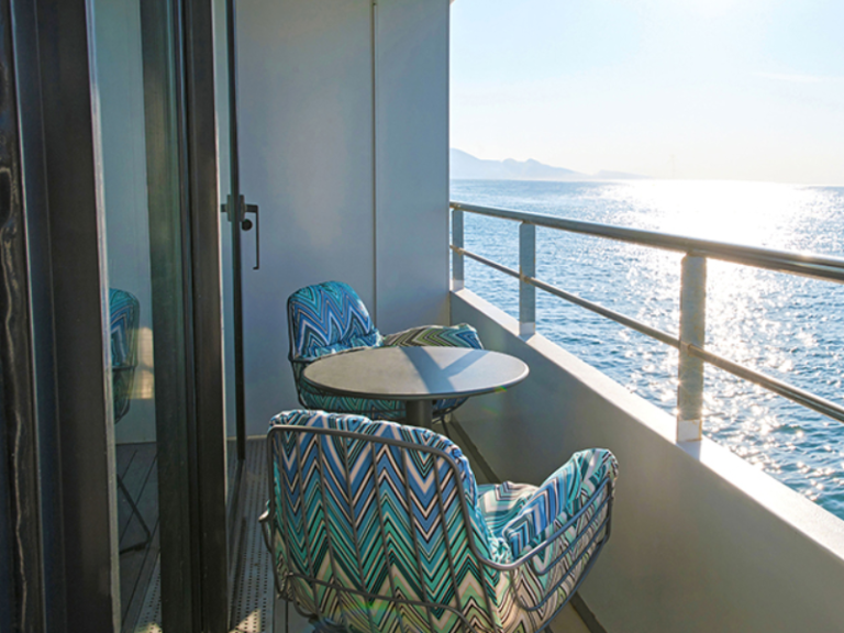 陽臺套房配有私人陽台與時尚的內裝,以及一切讓您在海上航程中倍感舒適的貼心設施。