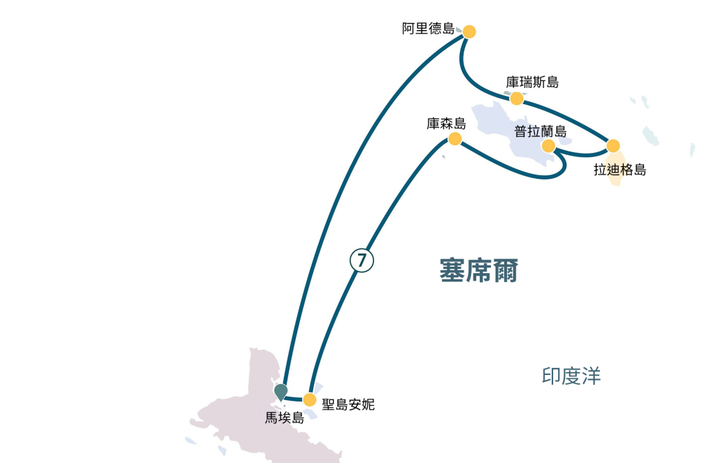 塞席爾群島由一百多座島嶼組成,孕育出珍貴而獨特的自然生態。從普拉蘭島(Praslin)的海椰子森林,到棲息珍稀海鳥的阿里德島(Aride),每一站都展現出大自然最純粹的生命力。